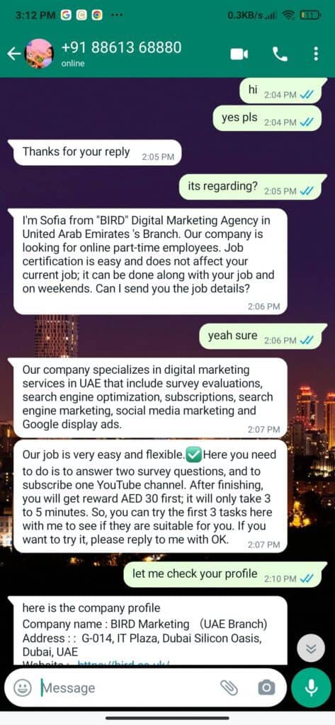 Malefactors are contacting individuals, purporting to be from Bird, with various texts and WhatsApp messages. These communications might include bogus offers, phishing attempts to collect personal information, or other deceptive practices. The aim of these scammers is to exploit unsuspecting members of the public, potentially leading to financial loss or identity theft.