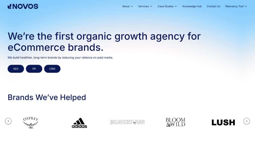 NOVOS focuses exclusively on e‑commerce, aligning technical SEO with merchandising and digital PR to curb reliance on paid traffic. Its employee‑ownership structure incentivises collaborative client relationships and long‑term thinking.