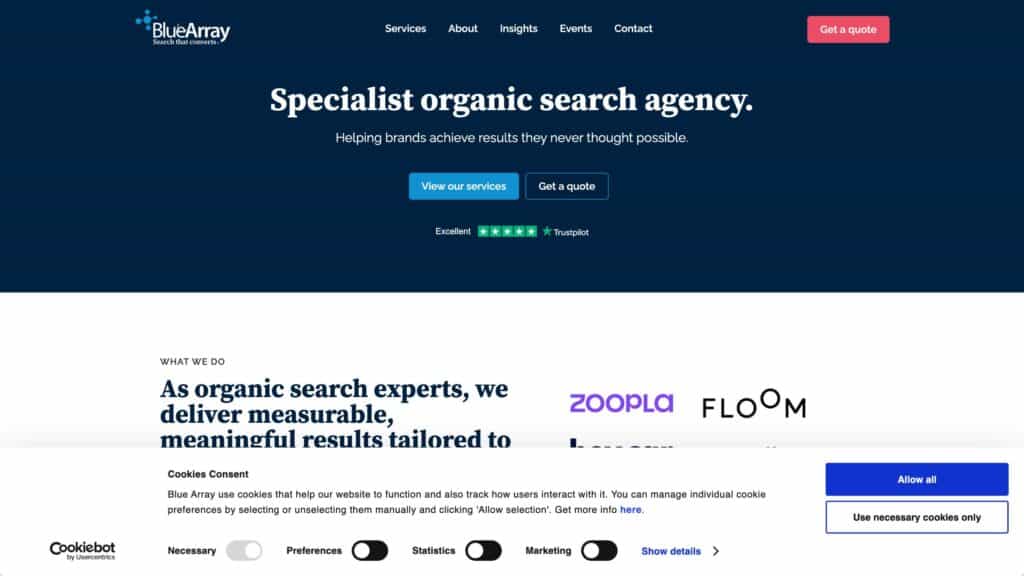 Blue Array positions itself between traditional consultancy and full‑service agency, delivering strategic roadmaps while retaining in‑house execution teams. Regular training events and resources support marketers wanting to deepen their SEO knowledge.